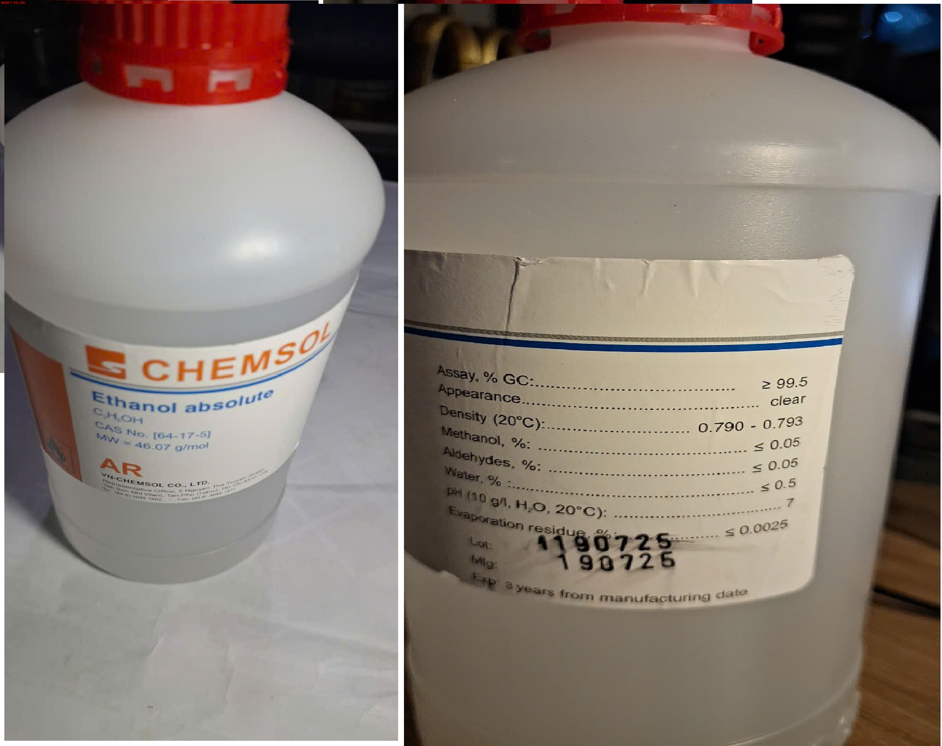 Tên sản phẩm: Cồn tuyệt đối 99.5 Ethanol Absolute (Chemsol) tinh khiết thí nghiệm