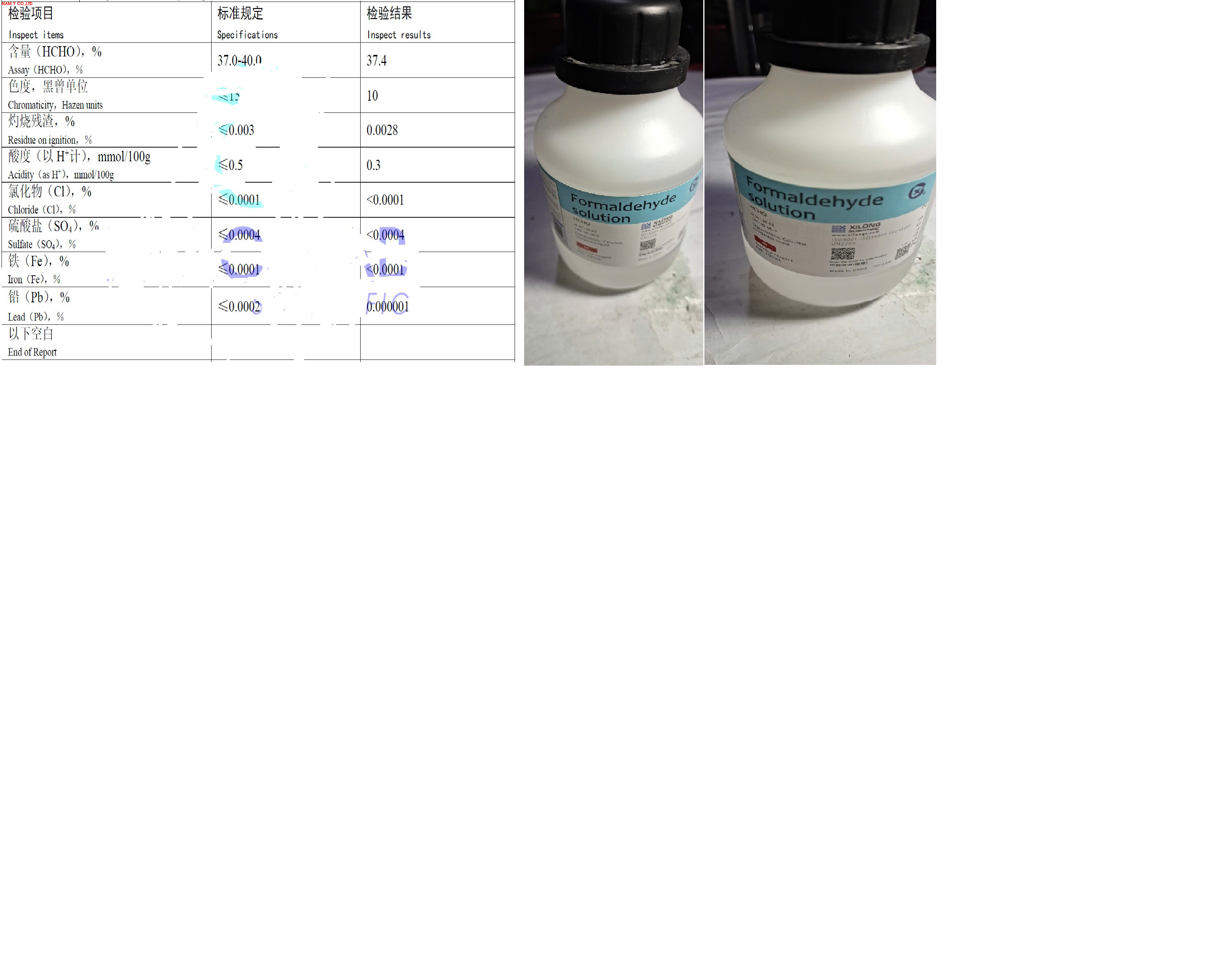 ĐẶC TÍNH KỸ THUẬT CỦA HÓA CHẤT FORMALDEHYDE SOLUTION (HCHO) :